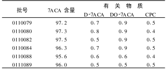 五、高效液相色譜法測定7-氨基頭孢烷酸含量結果